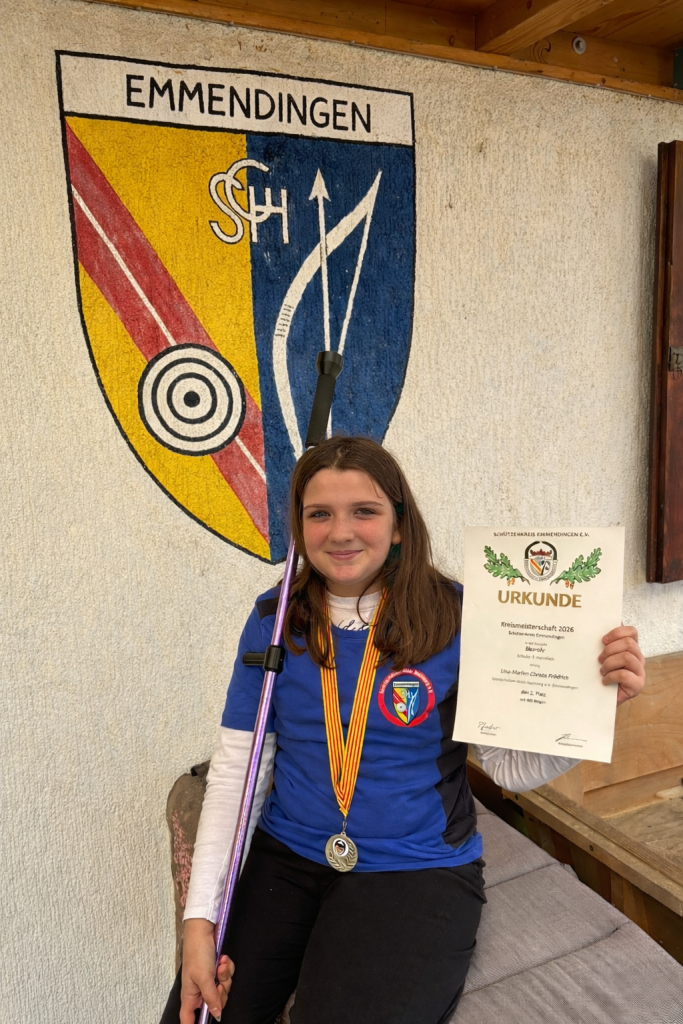 Bei der Kreismeisterschaft im Blasrohrschießen des SBSV zeigte der Nachwuchs der Sportschützen-Gilde Hochberg Emmendingen erneut starke Leistungen. In der Schüler-Klasse auf 7 Meter Distanz erreichte Lina-Marlen Christa Frödrich einen hervorragenden zweiten Platz und qualifizierte sich damit für die Landesmeisterschaft. Die Kreismeisterschaft fand in diesem Jahr bereits zum zweiten Mal im jährlichen Turnus statt. Blasrohrschießen ist eine noch vergleichsweise junge Disziplin im Deutschen Schützenbund, erfreut sich jedoch zunehmend großer Beliebtheit – besonders im Nachwuchsbereich. Für Lina-Marlen ist der Erfolg eine schöne Bestätigung ihrer kontinuierlichen Entwicklung: Bereits im vergangenen Jahr stand sie bei der Kreismeisterschaft auf dem Podium. Mit ihrem erneuten starken Ergebnis sicherte sie sich nun eine weitere Teilnahme an der nächsten Wettkampfebene.Betreut und ausgebildet wird sie im Jugendbereich der Sportschützen-Gilde Hochberg Emmendingen, welche großen Wert auf Nachwuchsarbeit legt. Jugendausbilder und Betreuer Matthias Frödrich begleitet die jungen Sportlerinnen und Sportler regelmäßig im Training und bei Wettkämpfen.Das Blasrohrschießen gilt als besonders niedrigschwellige und gesundheitsfördernde Sportart, die Konzentration, Atemtechnik und Körperbeherrschung trainiert. Gerade deshalb eignet sie sich hervorragend für Kinder, Jugendliche, Erwachsene und Senioren gleichermaßen. Bereits ab etwa sieben Jahren können Kinder mit dem Sport beginnen.Die SGH Emmendingen möchte diese dynamische Entwicklung nutzen und lädt Interessierte herzlich ein, die Sportart kennenzulernen. Blasrohrschießen ist ein Sport für Jung und Alt, bei dem sowohl Einsteiger als auch ambitionierte Wettkampfschützen schnell Erfolgserlebnisse sammeln können.Mit dem zweiten Platz bei der Kreismeisterschaft richtet sich der Blick nun auf die Landesmeisterschaft im Juli in Tuttlingen, bei der Lina-Marlen Christa Frödrich die Farben der Sportschützen-Gilde Hochberg Emmendingen vertreten wird. Verein und Trainer drücken bereits jetzt fest die Daumen.